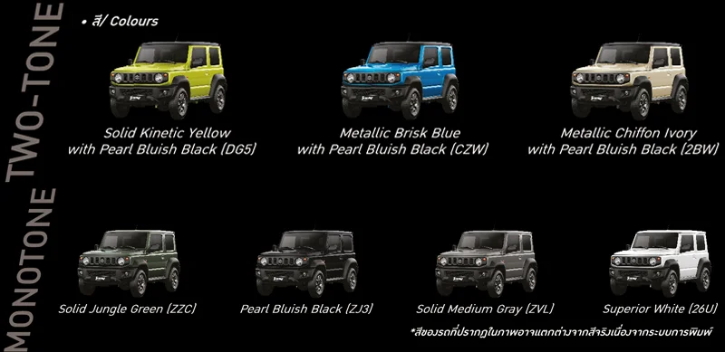All NEW Jimny SIERRA All NEW Jimny SIERRAก่อนหน้านี้ Suzuki ประเทศไทย เคยเปิดตัว All NEW Jimny SIERRA ในไทย เมื่อเดือน มีนาคม 2019 มีให้เลือก 2 รุ่นย่อย
