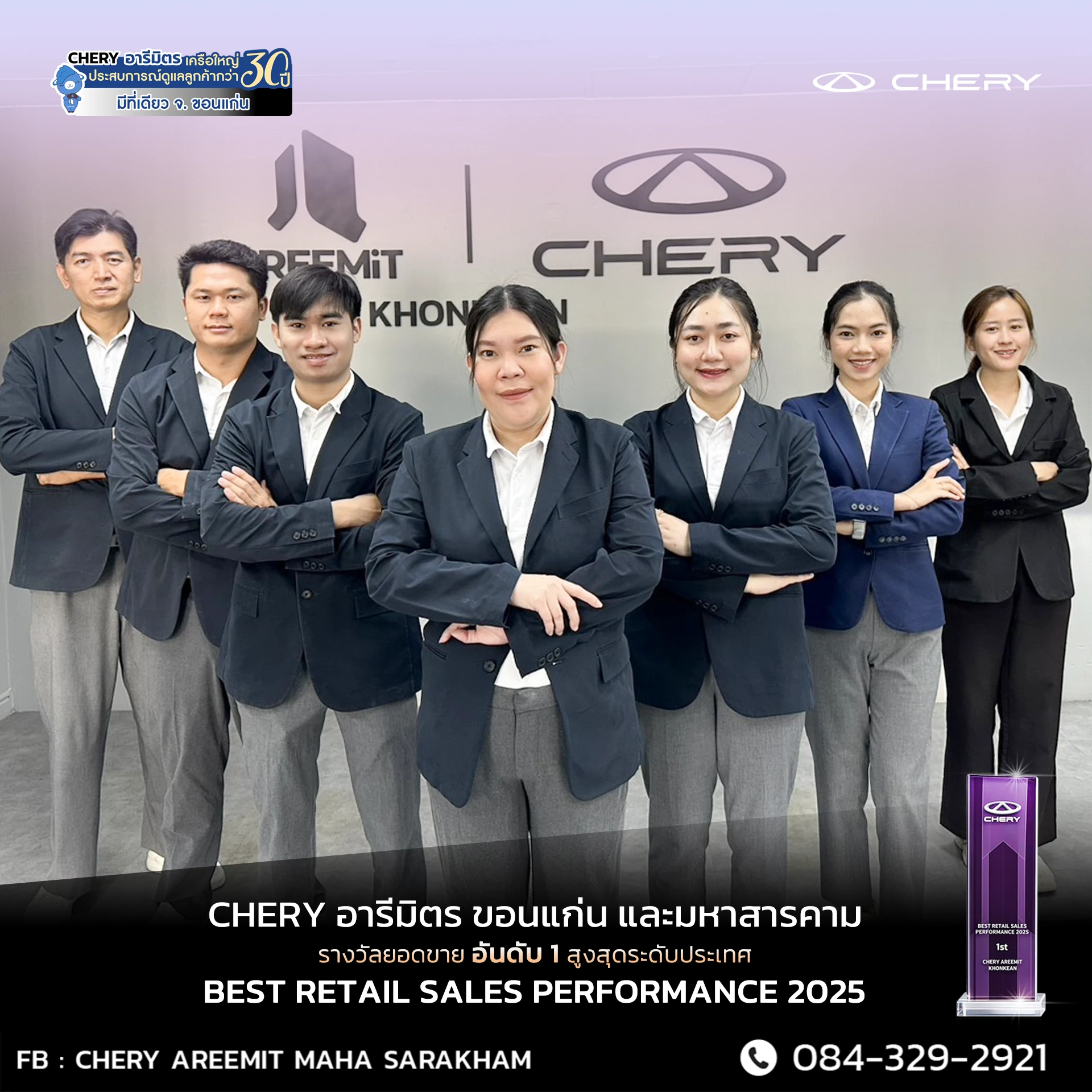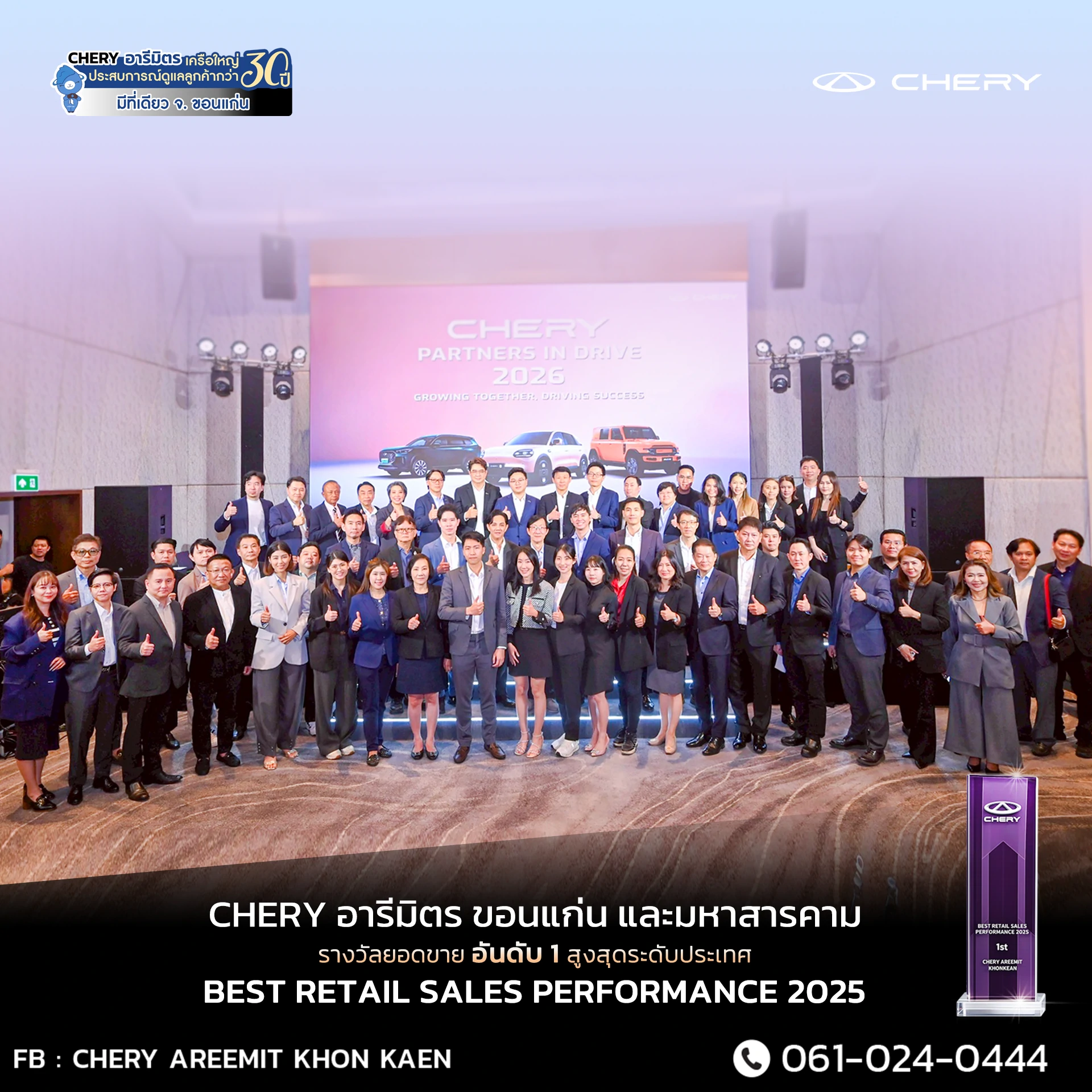 ความสำเร็จในครั้งนี้ นำทัพโดย คุณณัฐพล อุตรนคร กรรมการผู้จัดการฝ่ายขาย ซึ่งได้ให้เกียรติขึ้นรับรางวัลอันทรงคุณค่าในงานประชุม เชอรี่ ประเทศไทย รางวัลนี้ไม่ได้เป็นเพียงแค่โล่เกียรติยศ แต่เป็น "ข้อพิสูจน์" ถึงความมุ่งมั่น ตั้งใจ และมาตรฐานการให้บริการที่ยอดเยี่ยมของโชว์รูมและศูนย์บริการ เชอรี่ อารีมิตร ขอนแก่น และ เชอรี่ อารีมิตร มหาสารคาม